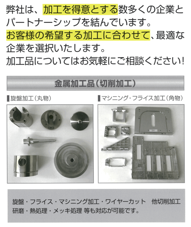 弊社は加工を得意とする数多くの企業とパートナーシップを結んでおります。